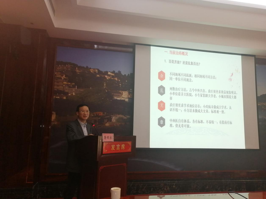 杭州师范大学(医学院)教授、硕士研究生导师鲁明良教授交流的课题是《HS疗法-痔病治疗新方案》,HS疗法是在多因素综合分析目前临床上肛肠专科的常用治疗方案和现状基础上,全国16位专家教授总结研究出的一种全新治疗方法和理念,依据“内痔内治、外痔外治”的原则,内痔用三重固脱(阻流、减压、纤化)治疗,外痔采用“HS治疗仪”微创方法(外痔组织脱水固化)治疗,具有内痔固缩无创面、肛管肛垫无损伤、外痔切口无引流、创面无碳化、无缝线、无结扎的特点,可以用来治疗各种类型痔疮,治疗肛周所有疾病。