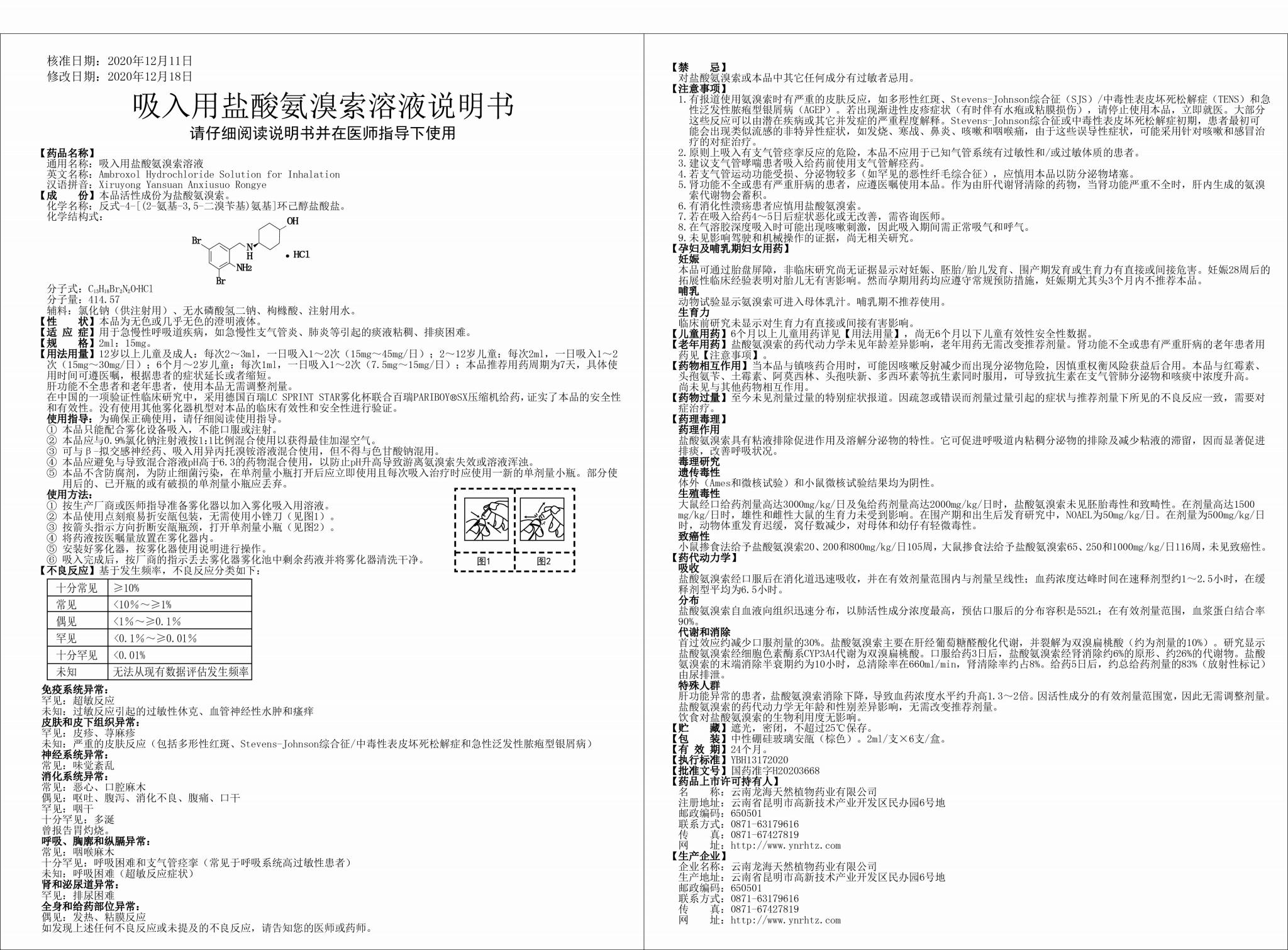 【通用名】 盐酸氨溴索雾化吸入溶液
