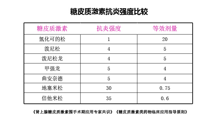 三.糖皮质激素的参数对比: